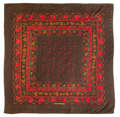 loden green with a floral and leaf motif.Labeled within the print: Hermes.