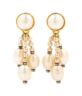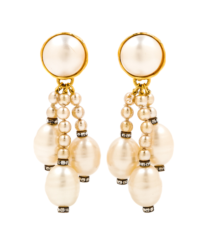 1993,with pearl and rhinestone embellished tassels.Stamped: Chanel.
