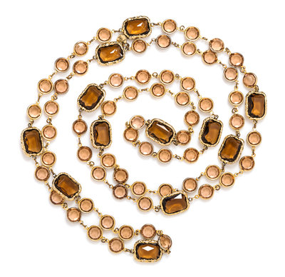 1981,gold plated with round and rectangular multifaceted crystals. Stamped: Chanel.