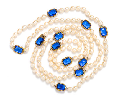 A Chanel Faux Pearl and Blue Gripoix Chicklet Sautoir,
