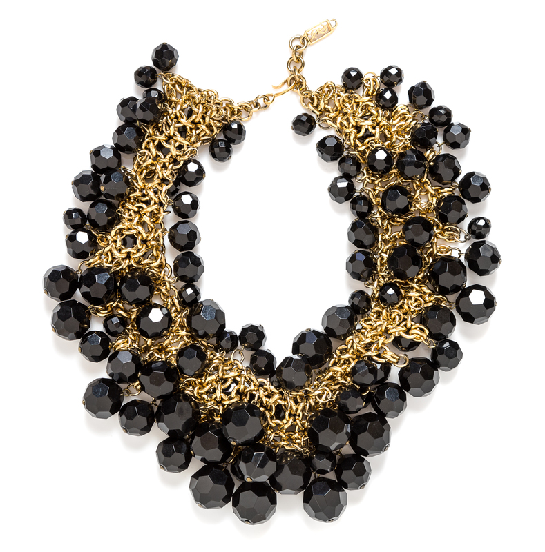 An Yves Saint Laurent Goldtone and Black Bead Cluster Necklace,