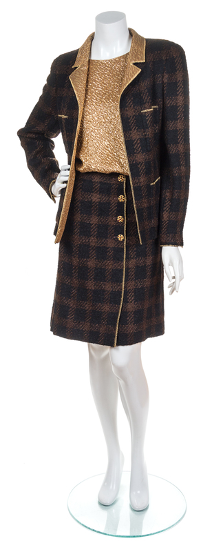 A Chanel Black and Brown Wool Boucle Plaid Skirt Suit,