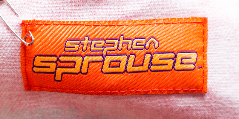 circa 1999,with an "Andy Warhol" print, flap pockets, front slip pockets and velcro closure.Labeled: Stephen Sprouse.