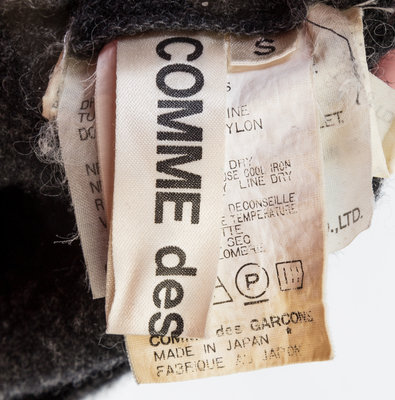 1994,intentionally distressed with a raw neckline, arm holes and hem.Labeled: Comme des Garcons.
