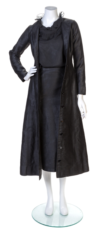 An Yves Saint Laurent Black Cotton Gabardine Coat Ensemble,