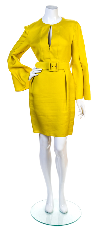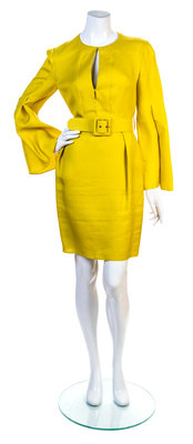 A Gucci Chartreuse Silk Bell Sleeve Dress,