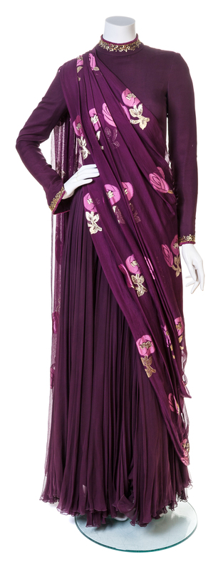 A George Halley Aubergine Sari Inspired Evening Gown,