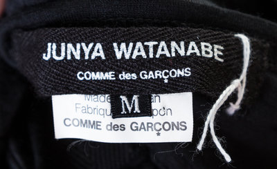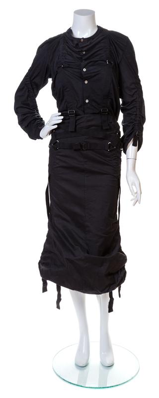 2002,comprised of a wool long sleeve top with front button closure; together with a cotton high waisted skirt.Each labeled: Junya Wantanabe.