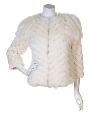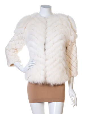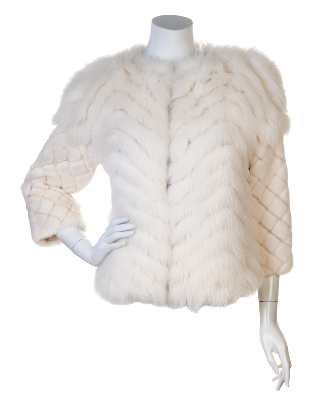 An Oscar de la Renta Cream Fox and Long Hair Mink Apres Ski Jacket,