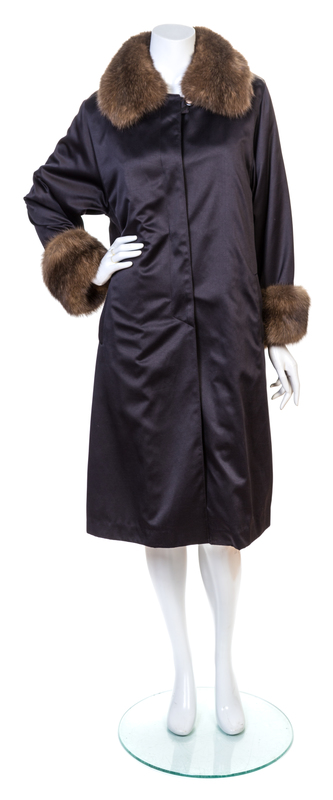 A Revillon Navy Satin Fur Lined Coat with Sable Trim,