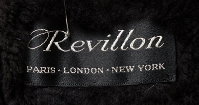with a sheared mink lining, a sable collar and cuffs, two side slip pockets and front button closure.Labeled: Revillon.