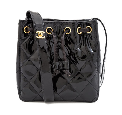A Chanel Black Patent Leather Quilted Drawstring Bag,