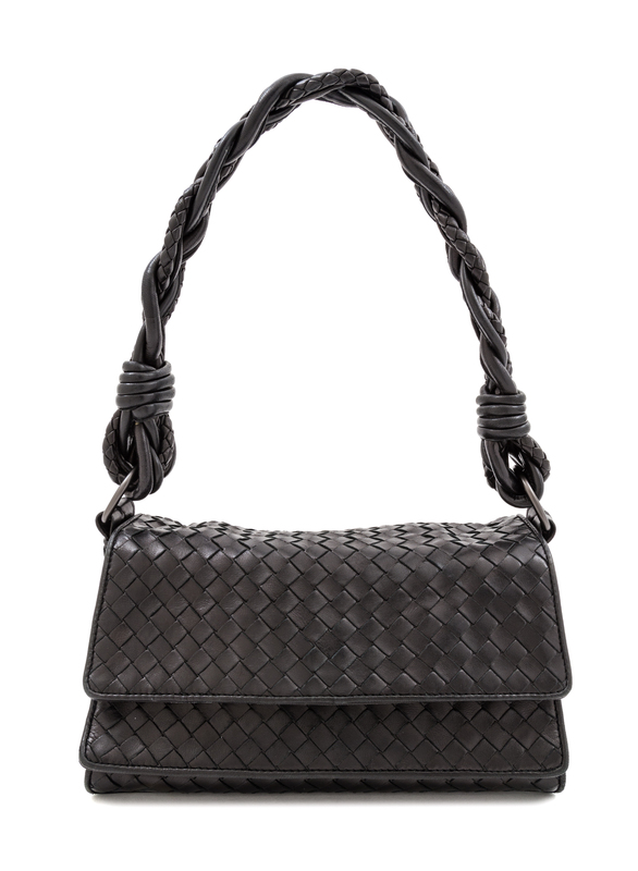 A Bottega Veneta Black Intrecciato Leather Double Flap Handbag,