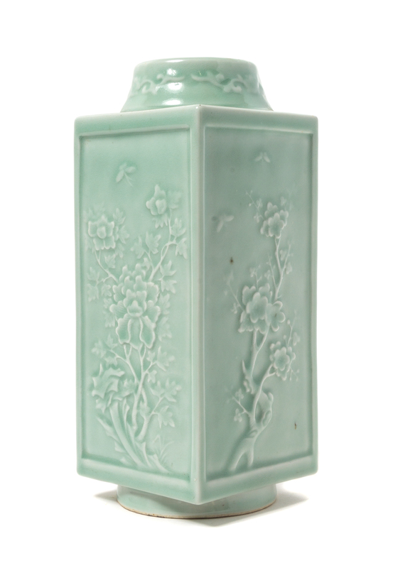 A Carved Celadon Porcelain Cong Vase