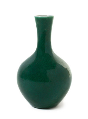 of bottle form, the ovoid body rising to a tall neck and a slightly flared mouth.