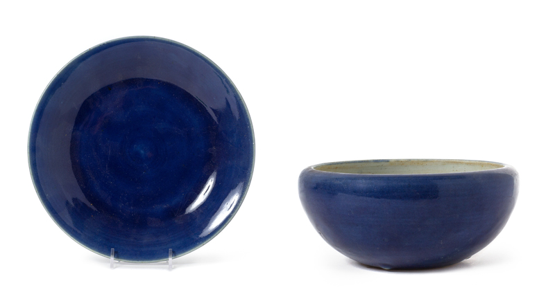 comprising a bowl rising to an inverted rim raised on a flat foot, together with a shallow dish rising to an everted lip.