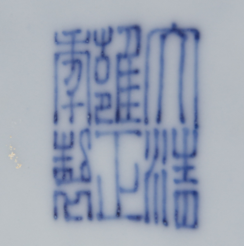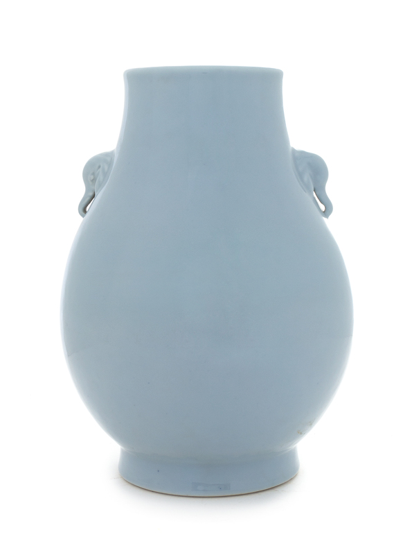 of zun form with two elephant head handles, bearing an apocryphal Yongzheng six-character mark in underglaze blue to the underside.