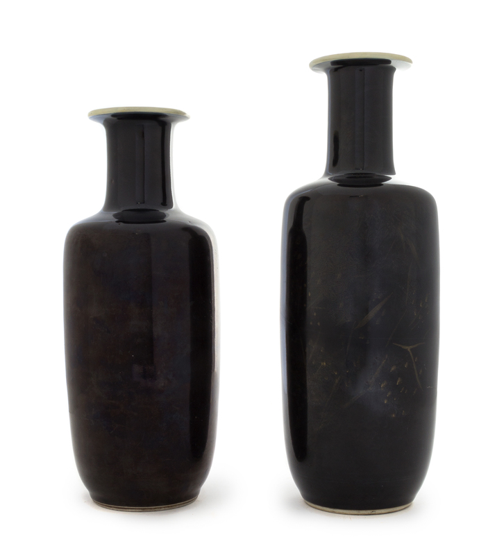Two Black Glazed Porcelain Vases