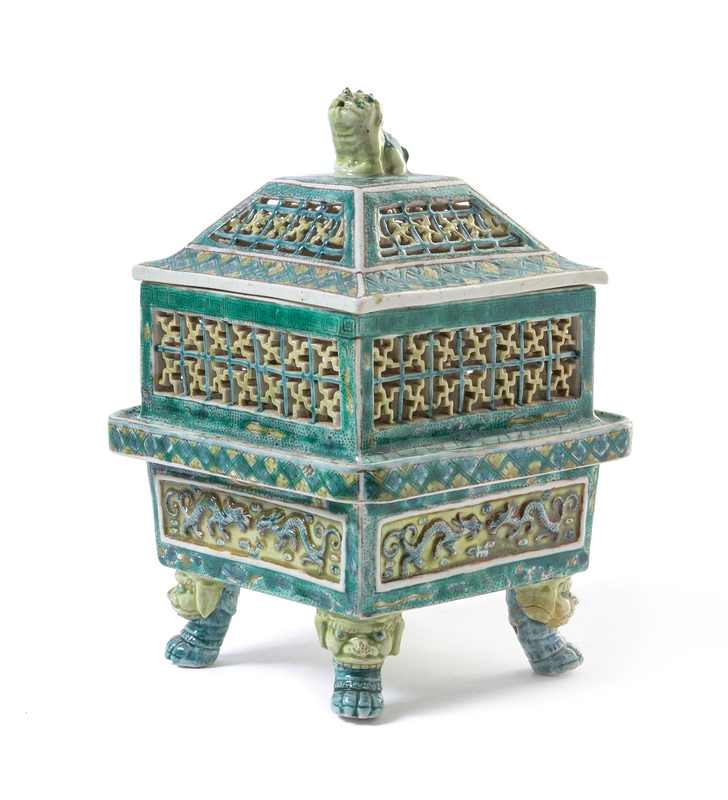 A Famille Verte Reticulated Porcelain Censer and Cover
