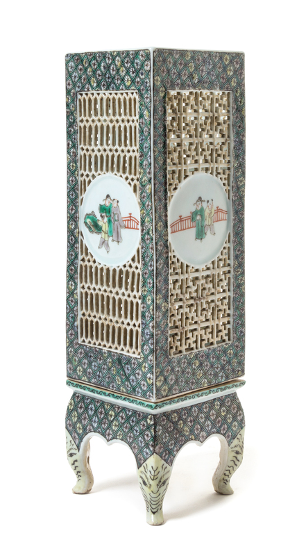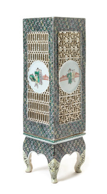 A Famille Verte Reticulated Porcelain Lamp
