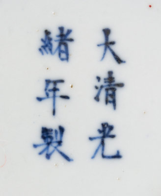 decorated with floral and foliated motifs, the underside bearing a Guangxu six-character mark in underglaze blue.