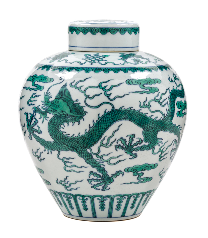 A White Ground Green Decorated Porcelain Covered Jar