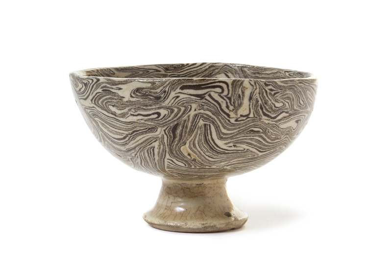A Marbled Pottery Stem Bowl