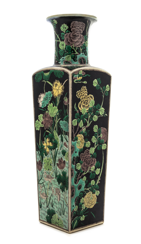 the side panels painted with flowers of the four seasons, the underside bearing a leaf-form mark.