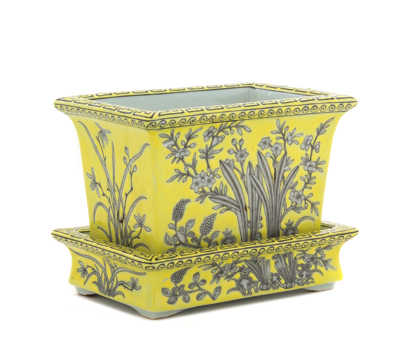 A Grisaille Enamel on Yellow Ground Porcelain Cachepot and Undertray