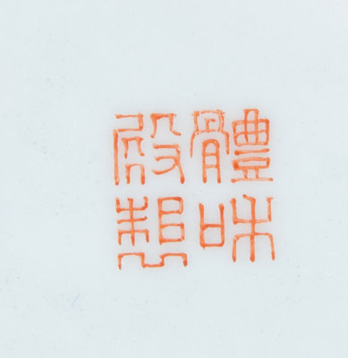 of rectangular form painted in grisaille with blooming prunus branches, narcissus, lingzhi and hydrangea against a light yellow ground, the underside bearing an apocryphal ti he dian zhi four-character iron red hall mark, the undertray decorated en suite.