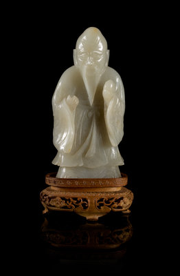 A Near-White Jade Figure of Standing Shoulao