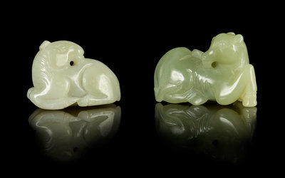 Two Carved Jade Figures of Horses