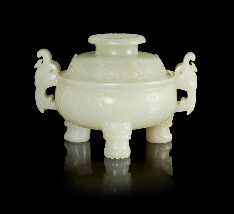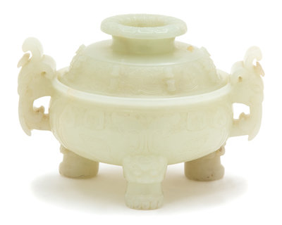 A Carved Jade Tripod Censer and Cover