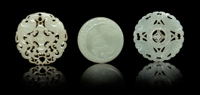 Three Carved Jade Circular Plaques