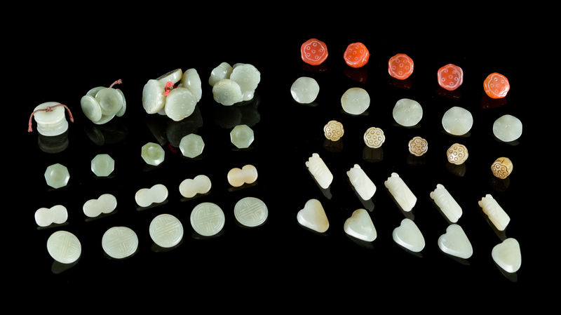 Sixty Carved Jade and Agate Buttons