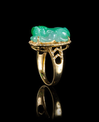 A Jadeite and 18K Gold Mounted Ring