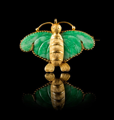 A Jadeite and Gold Mounted 'Butterfly' Brooch