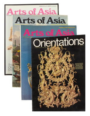 comprising 73 issues of Arts of Asia, including 4 issues from 1978 (May/June, July/August, September/October, November/December) , 7 issues from 1979 (January/February, 2 from March/April, May/June, July/August, September/October, November/December), 6 issues from 1980 (January/February, March/April, May/June, July/August, September/October, November/December), 6 issues from 1981 (January/February, March/April, May/June, July/August, September/October, November/December), 6 issues from 1982 (January/February, March/April, May/June, July/August, September/October, November/December), 6 editions from 1983 (January/February, March/April, May/June, July/August, September/October, November/December), 7 issues from 1984 (January/February, March/April, May/June, July/August, September/October, 2 from November/December), 6 issues from 1985 (January/February, March/April, May/June, July/August, September/October, November/December), 7 issues from 1986 (January/February, March/April, May/June, 2 from July/August, September/October, November/December), 5 issues from 1987 (January/February, March/April, July/August, September/October, November/December), 6 issues from 1993 (January/February, March/April, May/June, July/August, September/October, November/December), 6 issues from 1994 (January/February, March/April, May/June, July/August, September/October, November/December), one issue from 1995 (March/April), together with 4 issues of Orientations, including the November 1972 issue, the March and April issues from 1973 and the April issue from 1984, and one edition of Oriental Art, from Summer 1983 (78).
