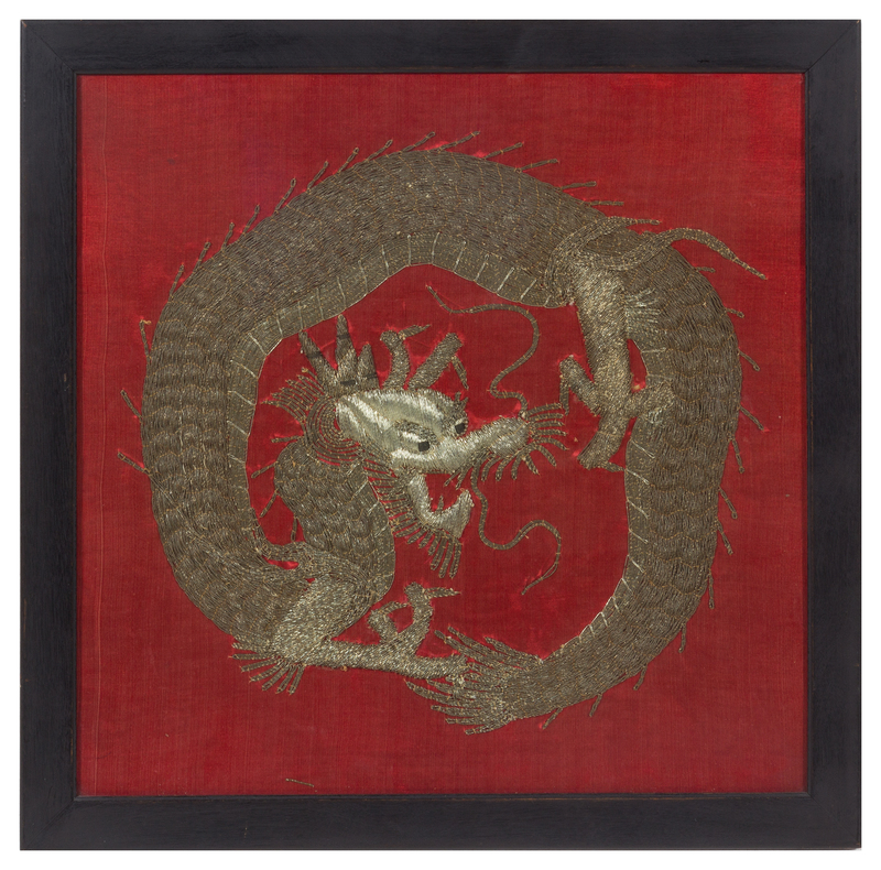 A Southeast Asian Embroidered Silk Dragon Panel