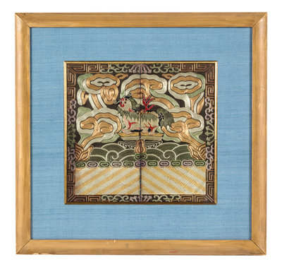 A Chinese Embroidered Silk Rank Badge of a Lion