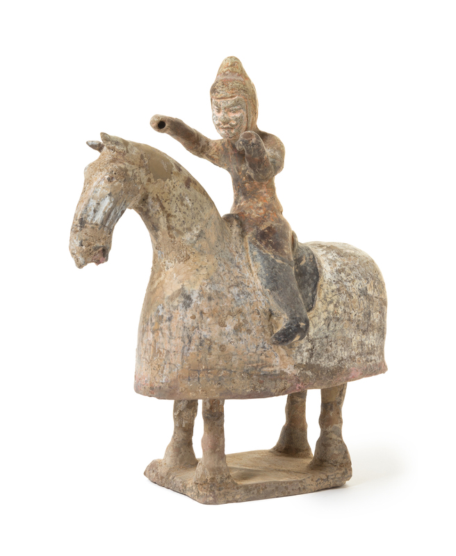 A Painted Pottery Equestrian Figure