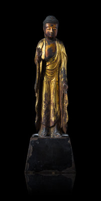 A Gilt Lacquered Wood Figure of Standing Buddha
