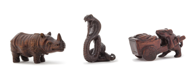 Three Carved Wood Netsuke