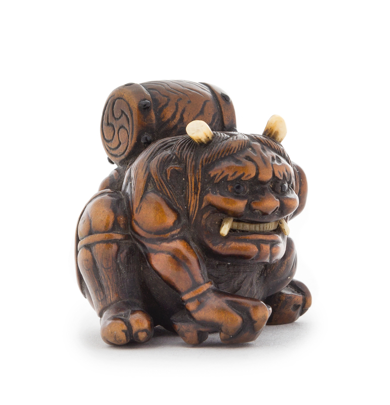 depicting an evil bearing a drum on his back, incised with a two-character maker's mark.