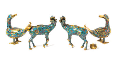 comprising a pair in the form of ducks and a pair in the form of qilins.