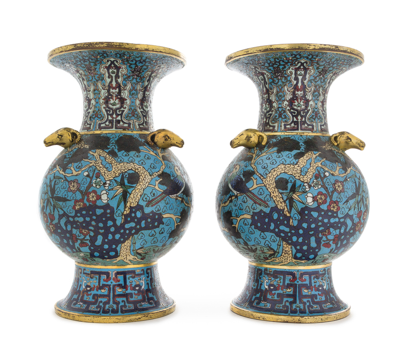 A Pair of Cloisonne Enamel Hu Vases