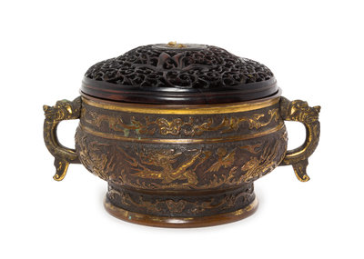 A Parcel-Gilt Bronze Incense Burner