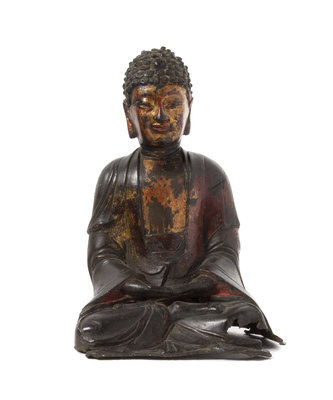 A Parcel Gilt Bronze Figure of Buddha Shakyamuni