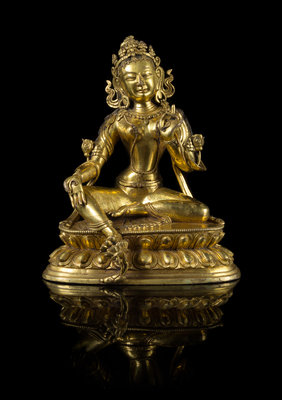 A Sino-Tibetan Gilt Bronze Figure of Tara