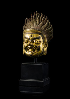 A Sino-Tibetan Gilt Bronze Head of Bodhisattva Mahakala